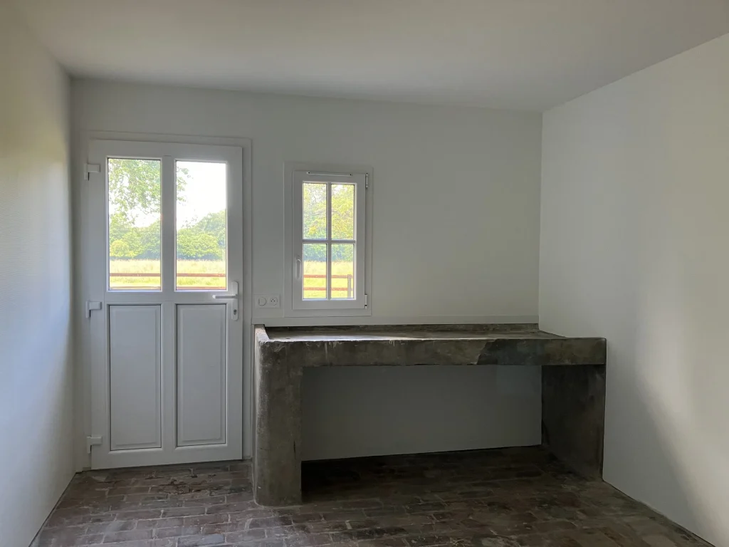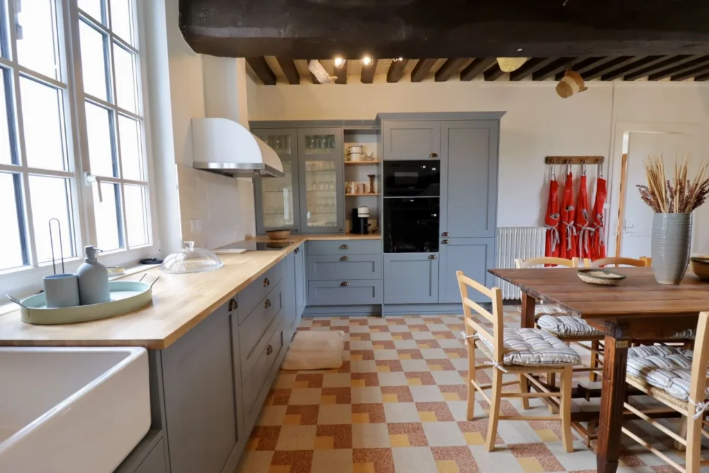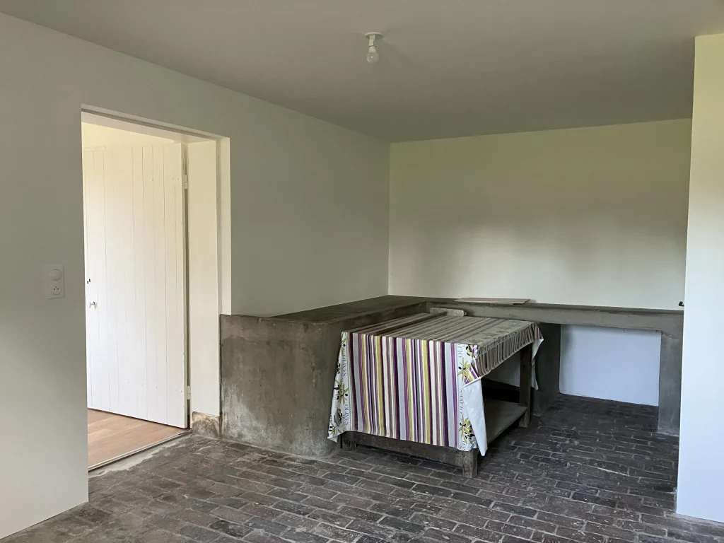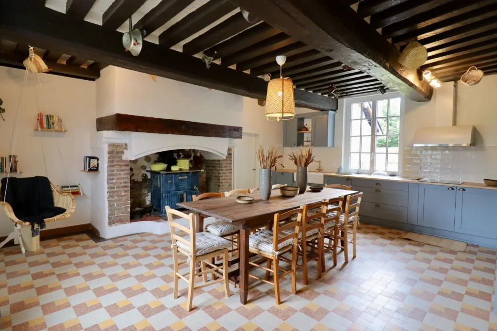 Ce projet d’architecture d’intérieur concernait une maison typiquement normande, dont une partie était autrefois dédiée à la fabrication du cidre. L’objectif était de préserver l’authenticité et le charme de cette bâtisse ancienne, tout en l’adaptant aux usages contemporains. Nous avons entièrement repensé la cuisine afin de la moderniser et de la rendre plus fonctionnelle, en harmonie avec l’esprit du lieu.
