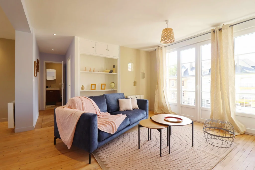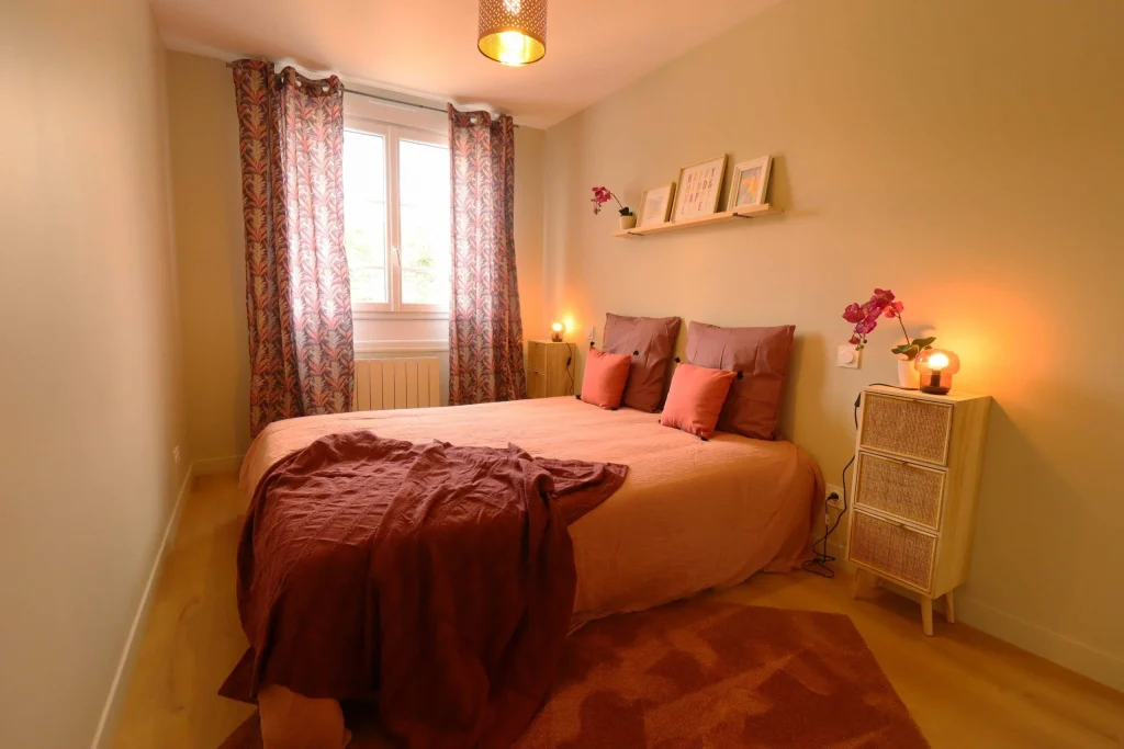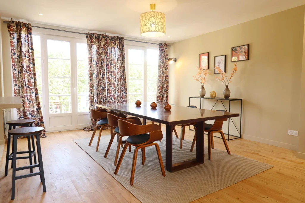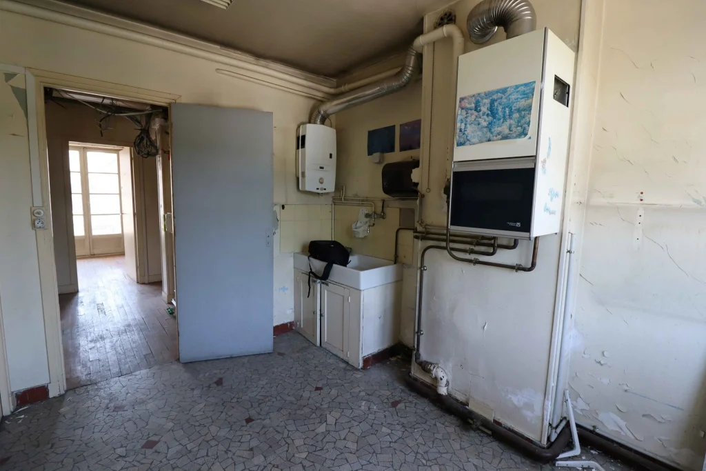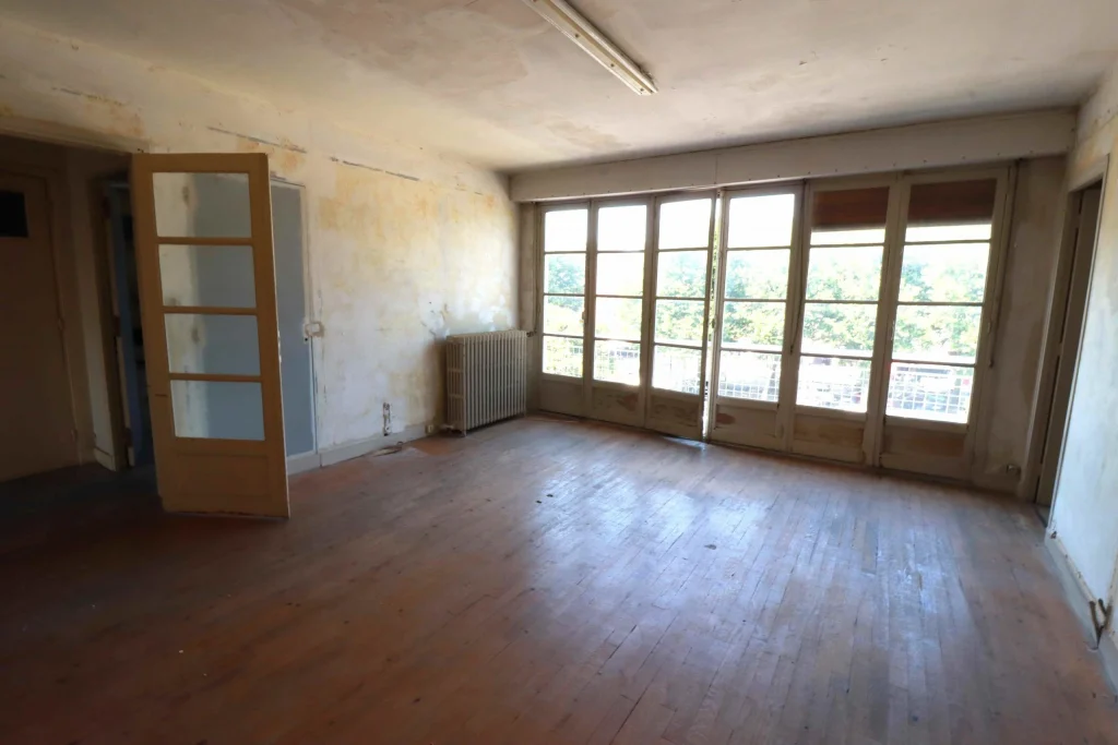 Malgré son état très abîmé, nous avons fait le choix de restaurer le parquet d’origine afin de préserver l’authenticité et le charme de l’appartement. En parallèle, la démolition de deux cloisons nous a permis de créer une grande pièce de vie ouverte, bénéficiant désormais d’une lumière traversante. Cette transformation a complètement changé la perception de l’espace, en le rendant plus lumineux, plus spacieux et plus agréable à vivre.
