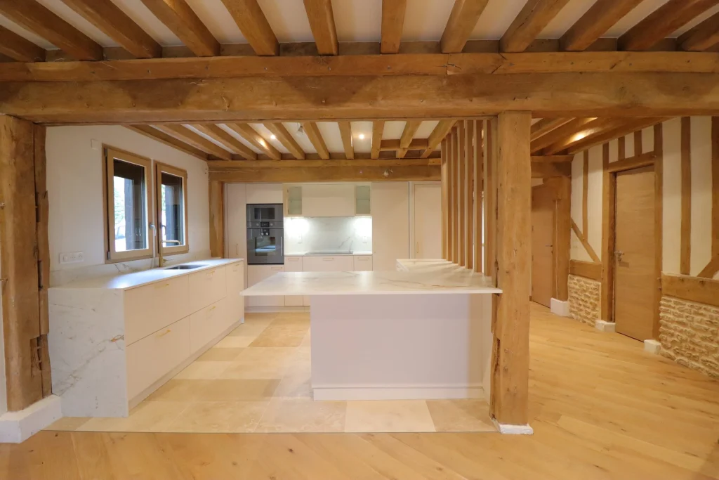 Ce projet d’architecture d’intérieur concernait la rénovation complète d’une maison située au cœur du Pays d’Auge. L’objectif était de moderniser les espaces tout en préservant le charme et l’authenticité de cette maison normande.