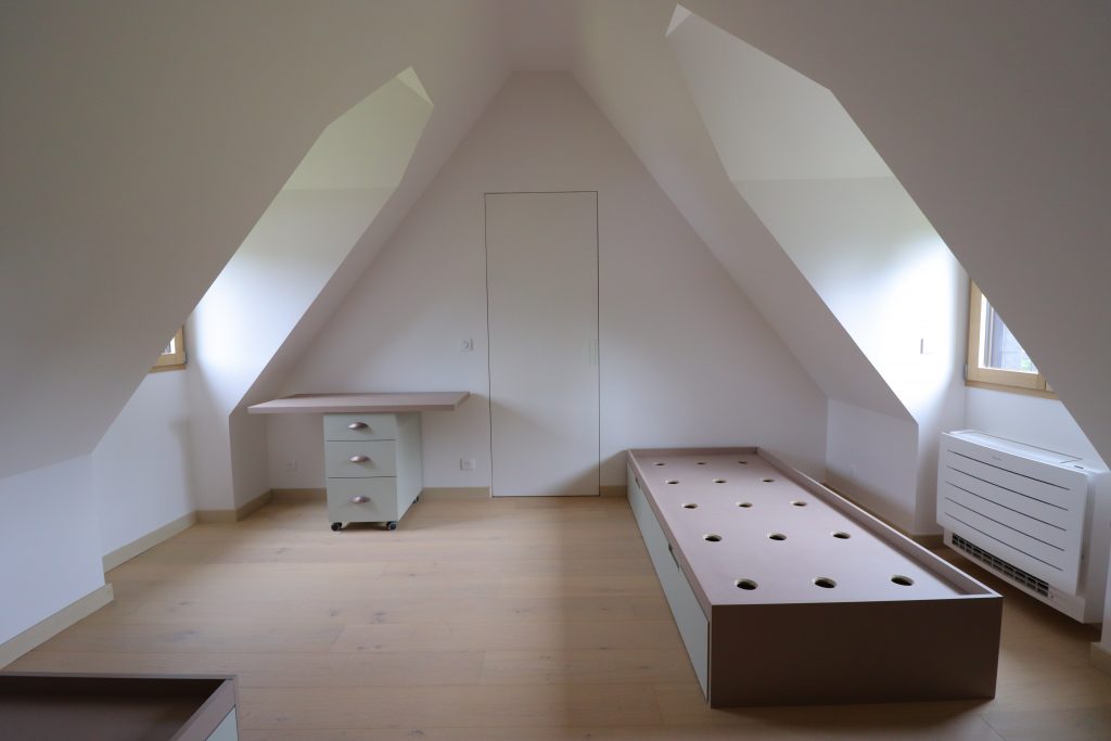 Le petit plus : à la demande de notre client, nous avons conçu une bibliothèque dissimulant une porte secrète.